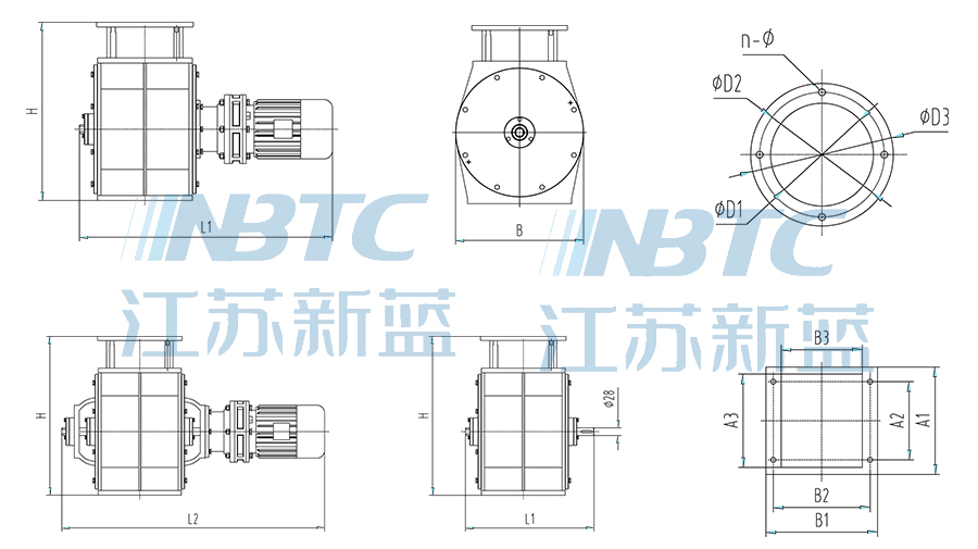 GF系列旋轉(zhuǎn)閥進口為圓形配有透明視窗出口為方形增大面積方便排料,軸承內(nèi)置、軸承外置、不帶電機、不銹鋼材質(zhì)可按需選擇。